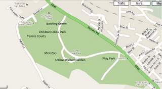 The park has circular paths and is great for walking or cycling around. Around the park there are other facilities of interest. There is an extensive childrens' play area on the south side of the park. There are formal walled gardens with a mini-zoo. There is a bicycling circuit for young choildren and a bowling green.
